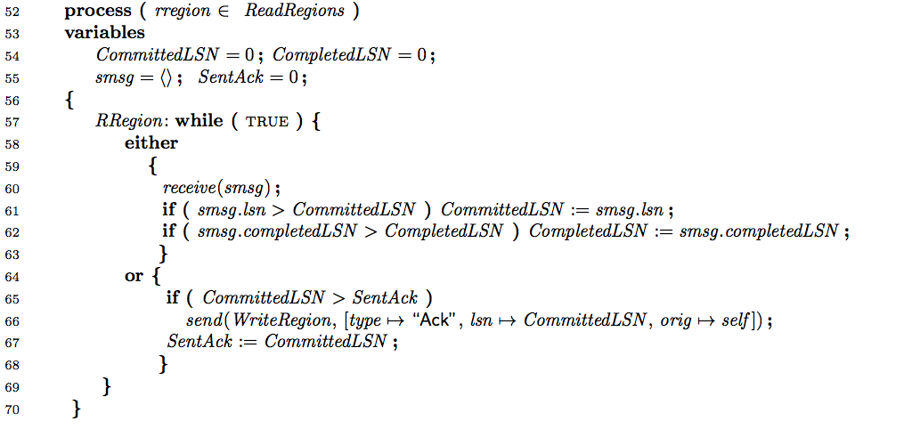 Here we do a walkthrough of the TLA+ specs for the MongoDB logless reconfiguration protocol we have reviewed recently. The specs are available at the https://github.com/will62794/logless-reconfig repo provided by Will Schultz, Siyuan Zhou, and Ian Dardik. This is the protocol model for managing logless reconfiguration. Let's call this the "config state machine" (CSM). This is the protocol model for static MongoDB replication protocol based on Raft. Let's call this the "oplog state machine" (OSM). Finally this model composes the above two protocols so they work in a superimposed manner. I really admire how these specs provided a modular composition of the reconfiguration protocol and Raft-based replication protocol. I figured I would explain how this works here, since walkthroughs of advanced/intermediate TLA+ specifications, especially for composed systems, are rare. I will cover the structure of the two protocols (CSM and OSM) briefly, before diving